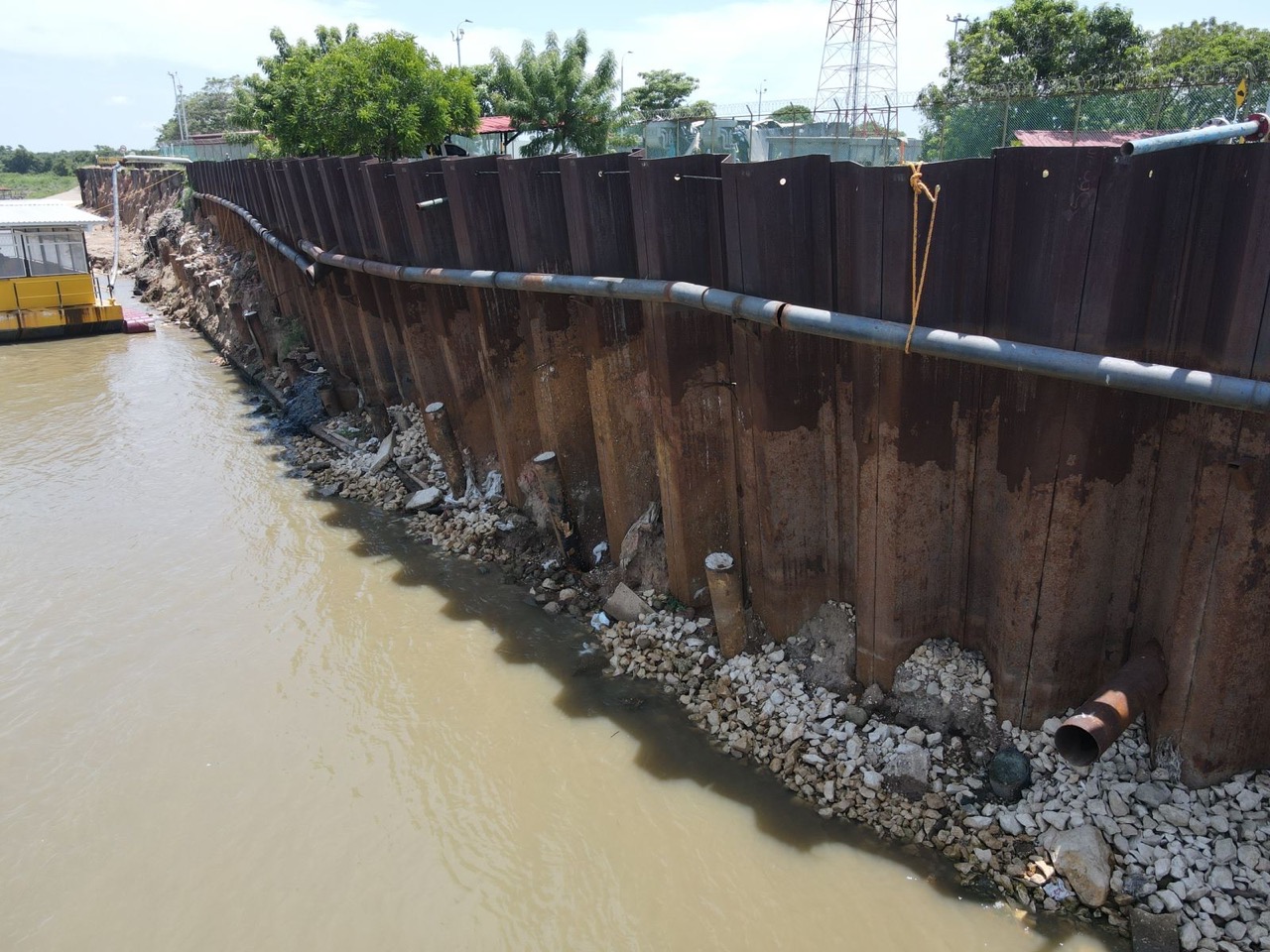 Retiro de table estacado metálico, tubos de anclaje y guayas.